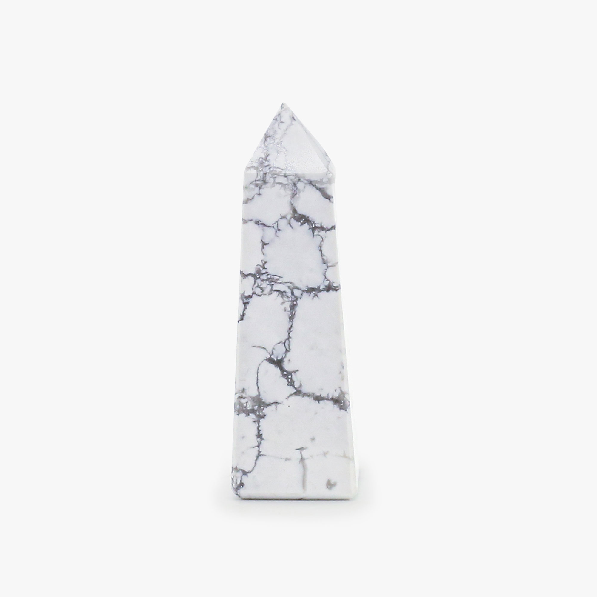 A polished howlite tower associated with calming energy, stress relief, and emotional balance