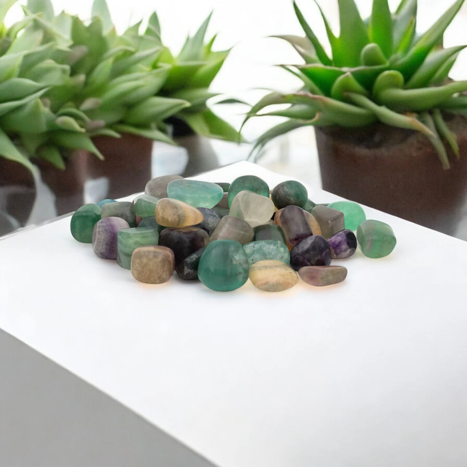 Multi Fluorite tumbled stones are treasured by many seeking mental organisation and a sense of harmony in daily life. People often turn to this crystal for its reputation of supporting focus and bringing clarity, especially during times when the mind feels scattered. Each 25mm tumble sits comfortably in the palm or crystal bowl, making it easy to keep close during study sessions, meditation or moments of reflection. This stone is thought to help align the Third Eye Chakra, gently opening pathways for insight and balanced thoughts.