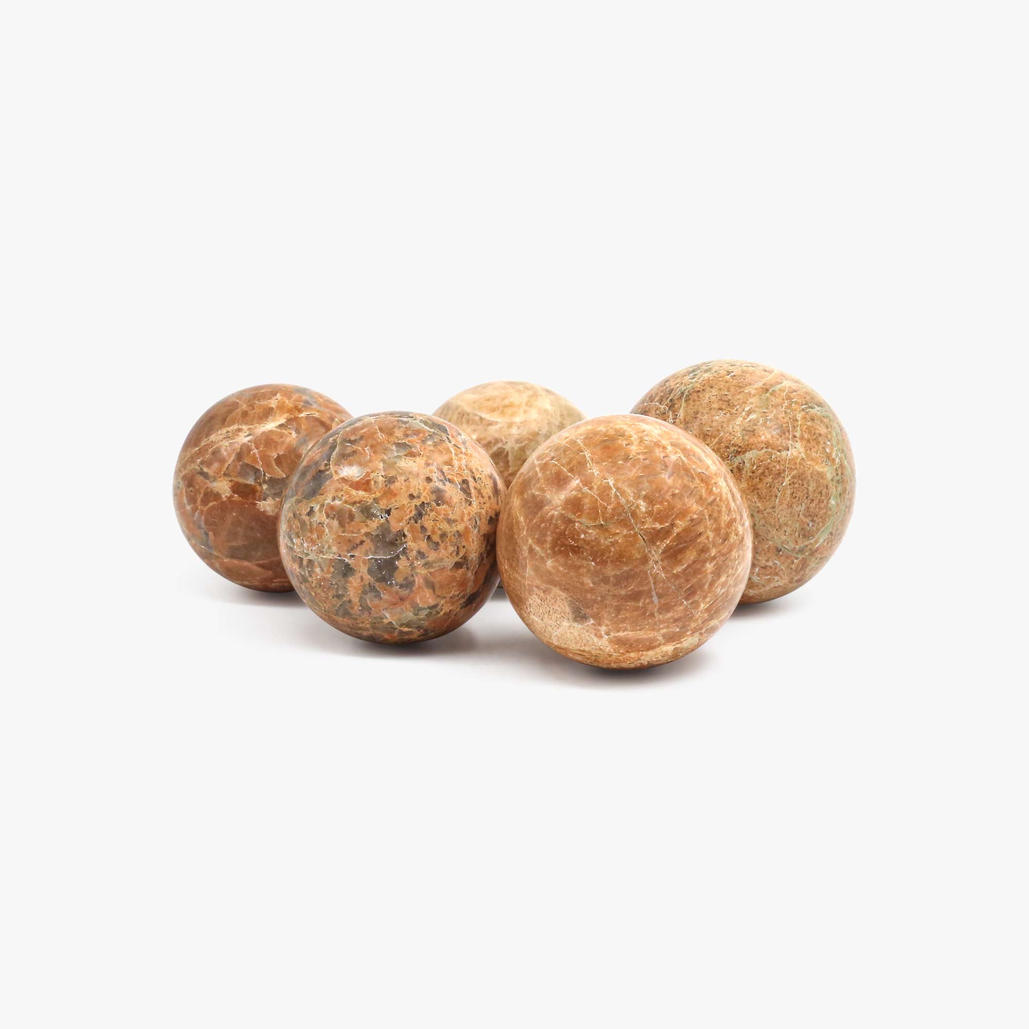 - Each sphere has unique peach tones and natural variations.