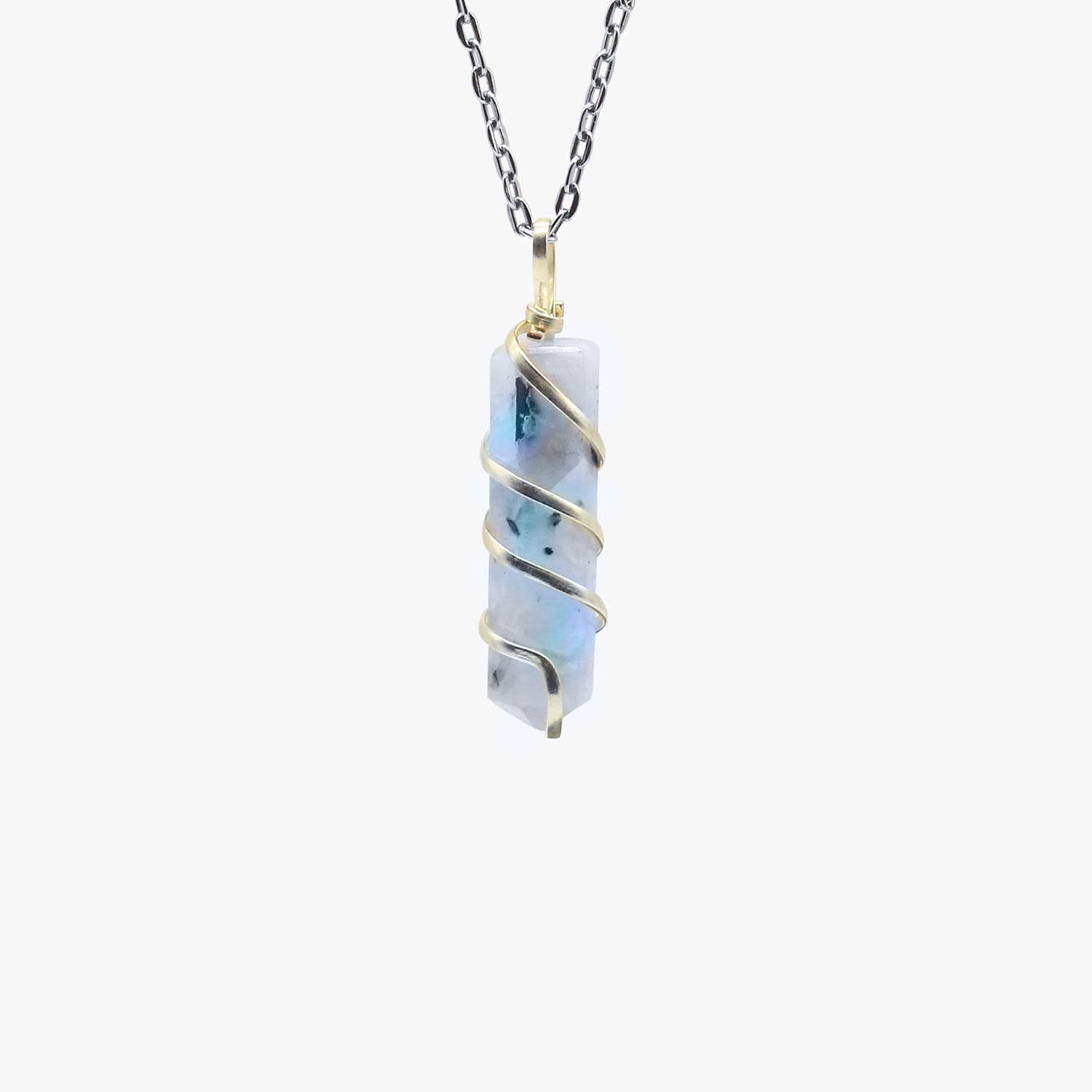As a potassium feldspar mineral, rainbow moonstone is cherished by those who appreciate natural crystal origins and a soft, luminous glow. The wire wrapping adds an elegant touch that sits smoothly against the skin, ideal for daily wear or layering with other natural Jewellery crystals. Each stone is carefully selected and hand checked before packing, so every pendant carries its own unique shimmer. Many in India value these crystal necklace pendants for their calming energy and timeless style.