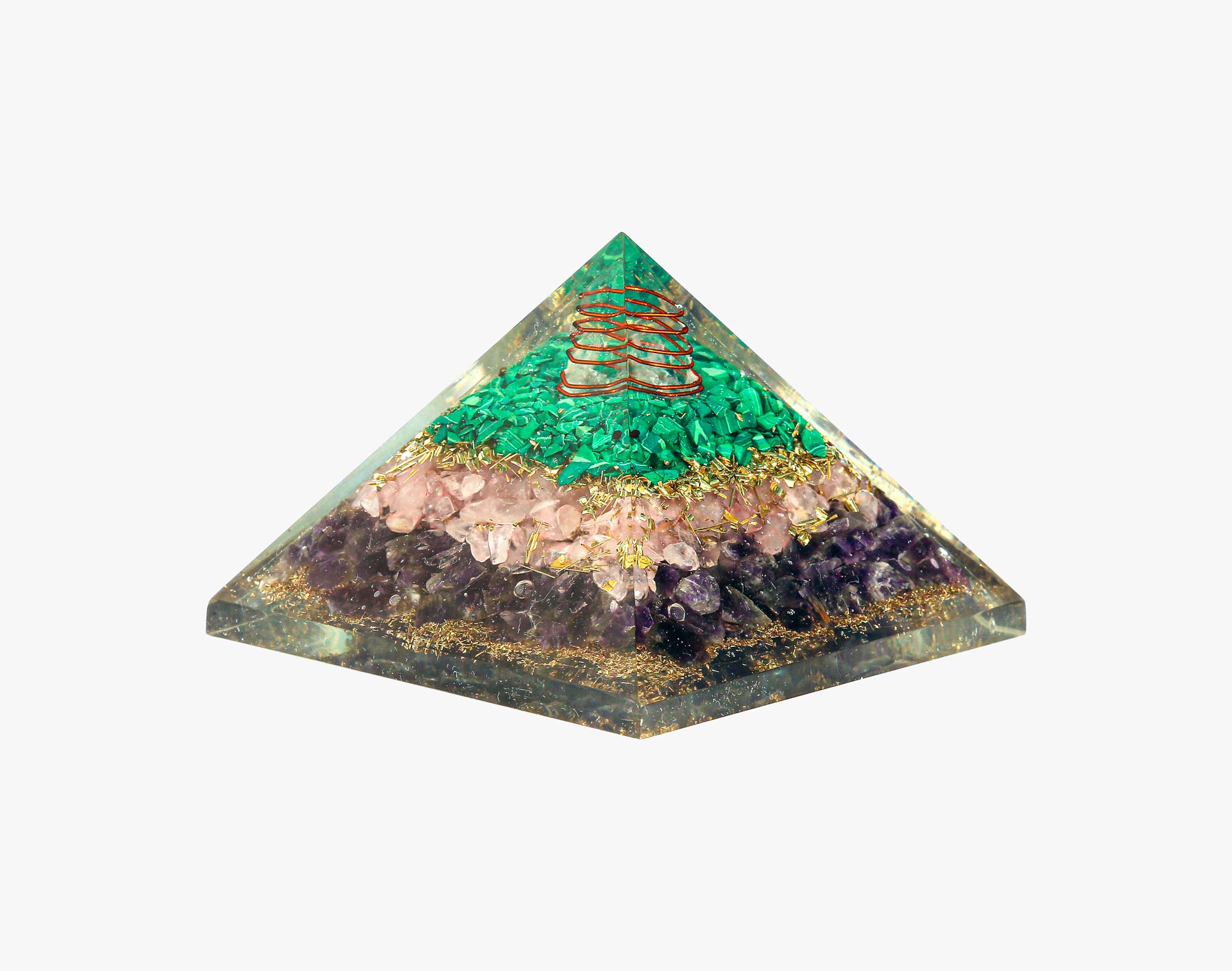 Rose Quartz Amethyst and Malachite Orgone Pyramid Meaning, Uses and Natural Details