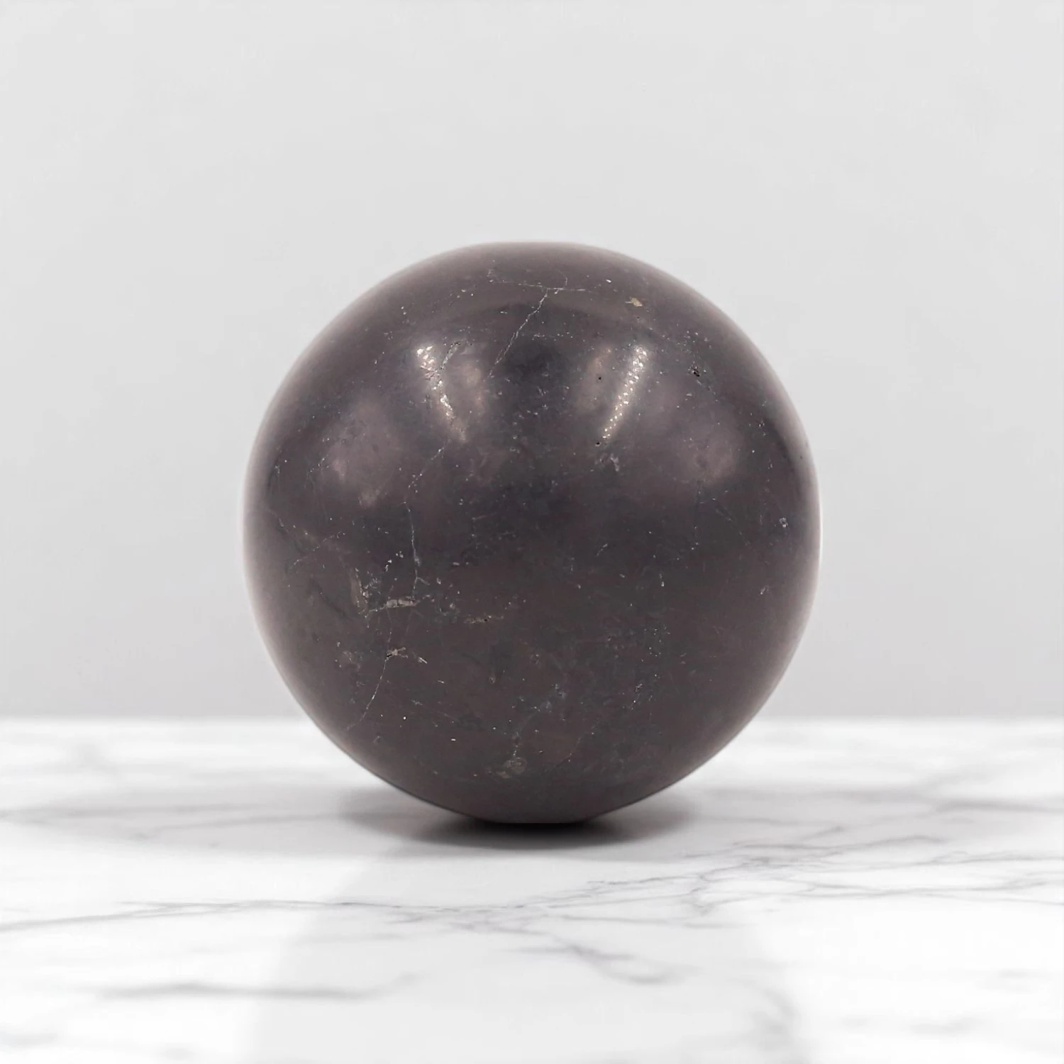 Many link this stone with Scorpio (Vrischik Rashi), finding it especially supportive during times of stress or transition. As a carbon rich mineraloid, Shungite carries an earthy depth that is appreciated by those who enjoy natural origin and authentic feel in their spiritual tools. Carefully selected stones are hand checked before packing so each sphere arrives with its unique pattern and texture intact. For those seeking mindful living or spiritual cleansing, this piece pairs beautifully with other natural Shungite crystals or as part of a display of polished crystal spheres.
