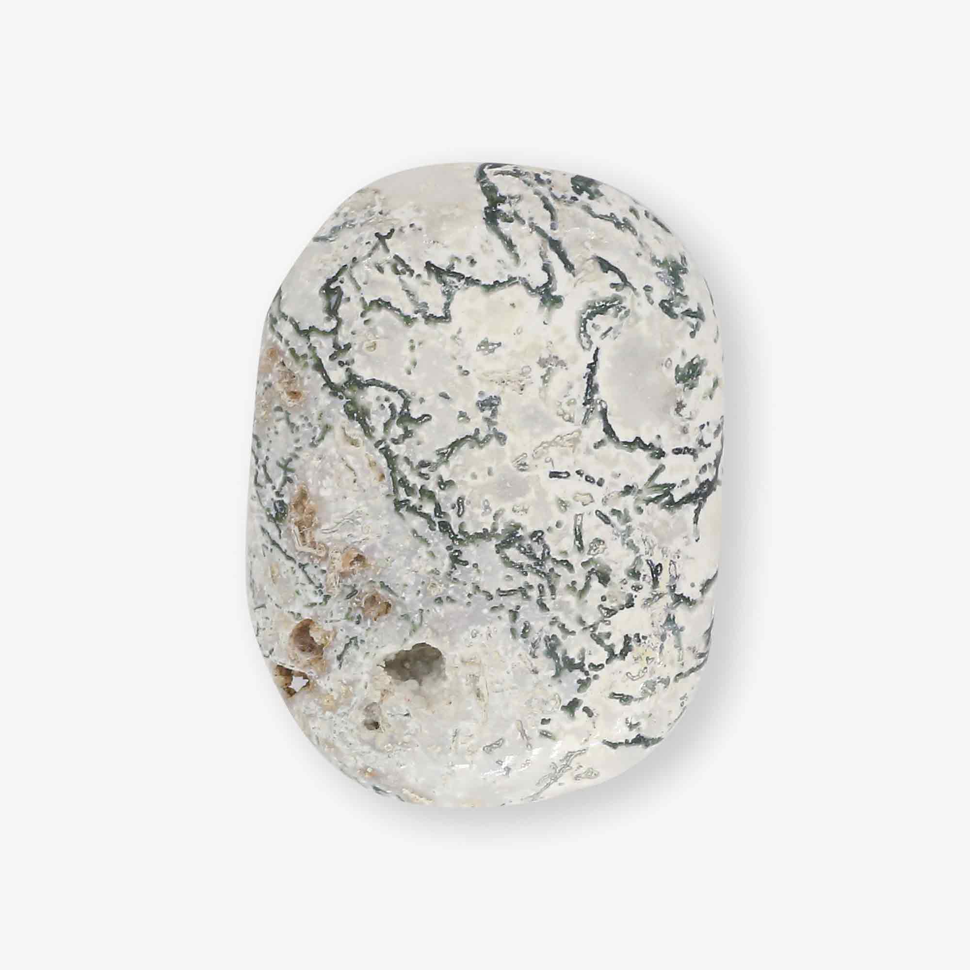- Each stone displays unique natural patterns and moss-like inclusions.